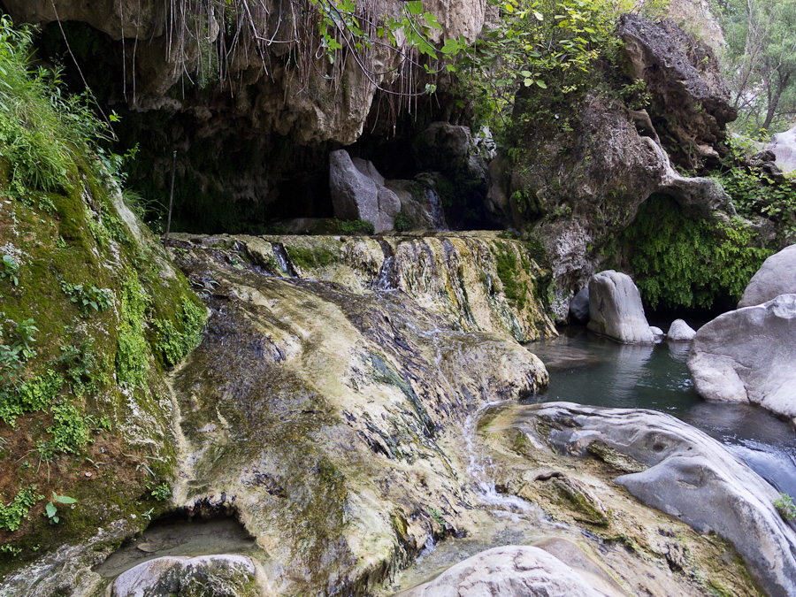 gorące źródła nieopodal klasztoru utworzyły malownicze jaskinie z efektownymi misami martwicowymi