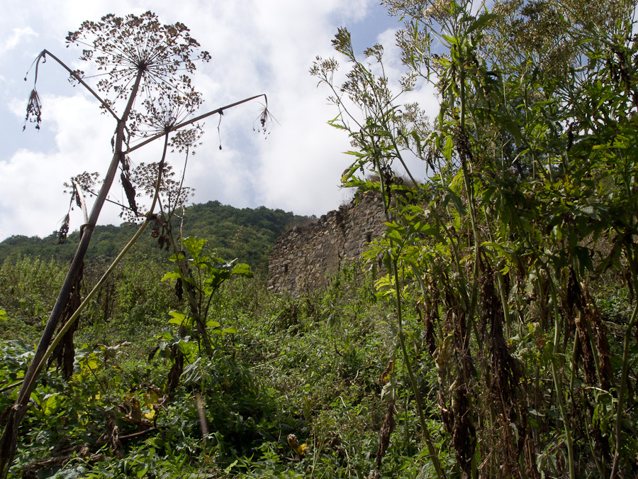 wśród zarośli na dnie doliny trafiłem na pozostałości wioski; z domów zostały tylko fundamenty, ale ostała się jeszcze cerkiew