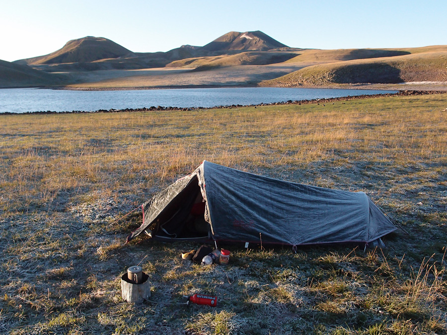 rano cały namiot pokryty był szronem - w nocy temperatura spadła do -5st.C