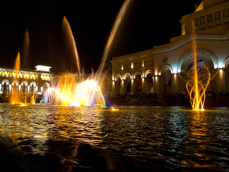 główna atrakcja i duma Erywania - tańczaca fontanna na placu Centralnym