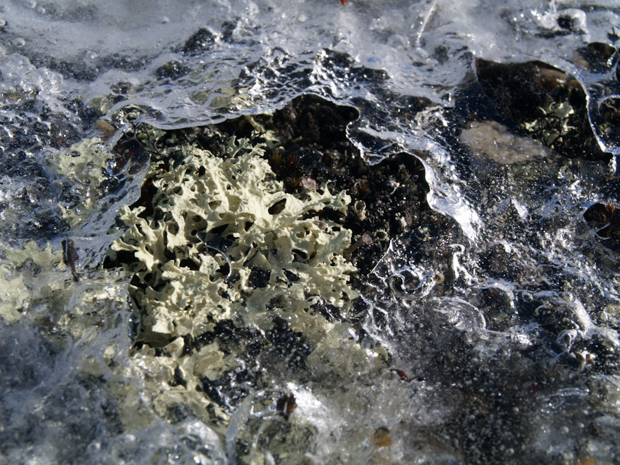 wiosna - spod śniegu zaczynają wychodzić mchy i porosty