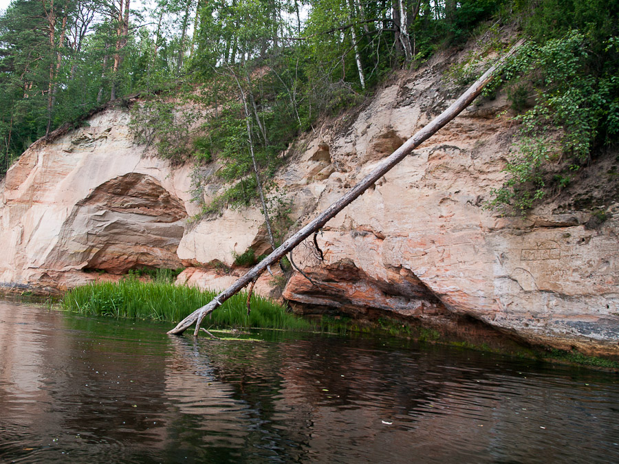 przez wiele kilometrów rzeka podmywa wysokie, piaskowcowe brzegi