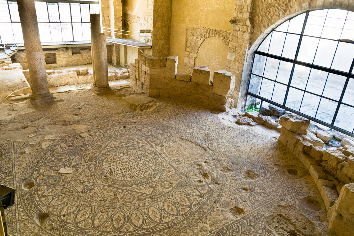 ciekawy przykład mozaiki greckiej, go której arabowie dodali swoje ormanmenty