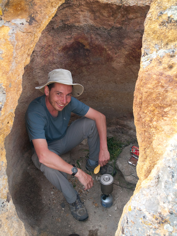 pomieszczenia kute w skale świetnie nadają się np. na polowa kuchnię, gdy silny wiatr studzi palnik opóźniając gotowanie