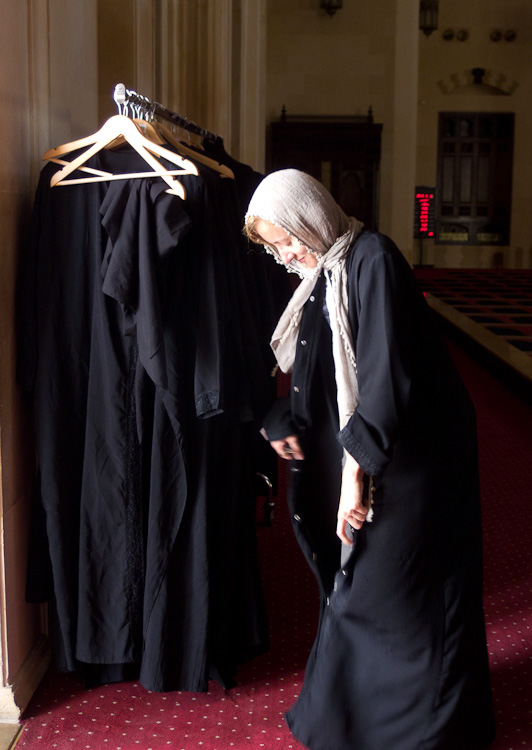 przy wejściu do tego meczetu kobiety musza założyć bezkształtne okrycie