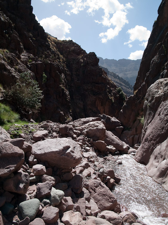 po kilku kilometrach ściany wąwozu stają sie co raz wyższe, wody przybywa, a progi skalne co raz trudniejsze do pokonania