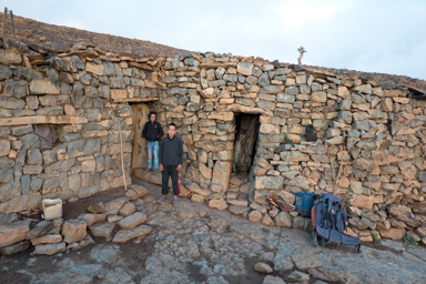 jednoizbowa chatka z kamienia, wysoko w górach