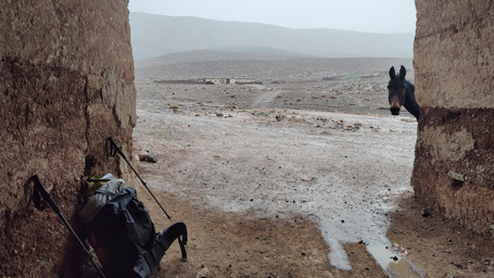 i postój, żeby przeczekać deszcz, w szopie w wioseczce Irhem n' Ou Laïd