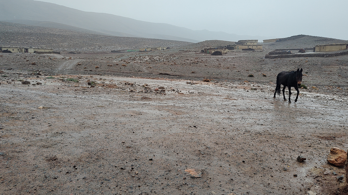 i postój, żeby przeczekać deszcz, w szopie w wioseczce Irhem n' Ou Laïd