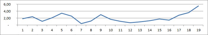 Wykres współczynnika spadku na odcinku Diyadin-Palu: