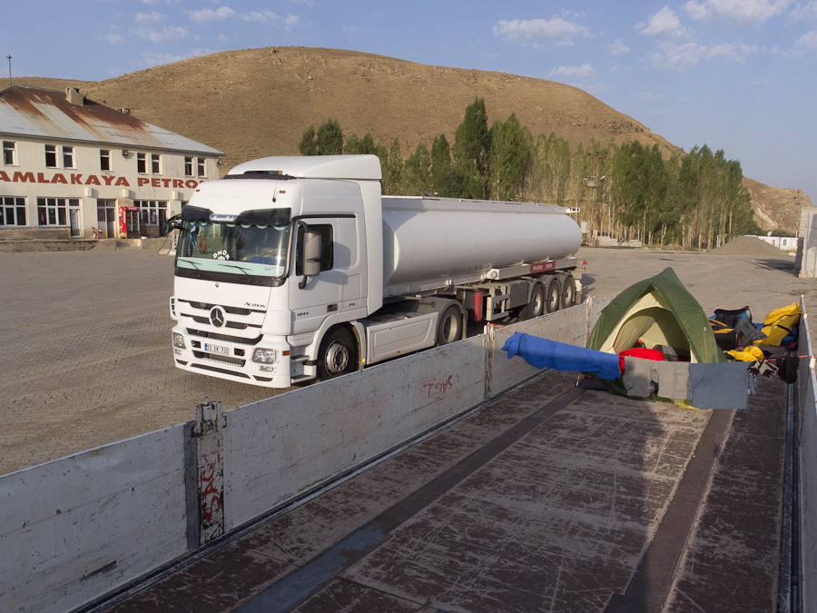 nocleg przed Tutak spędziłem na przyczepie TIR-a gościnnie udostępnionej mi przez właściciela stacji benzynowej