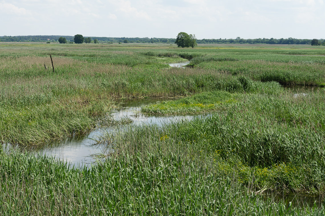 rzeka zaczyna się tu dzielić na setki odnóg wśród błot i łąk porośniętych trzciną