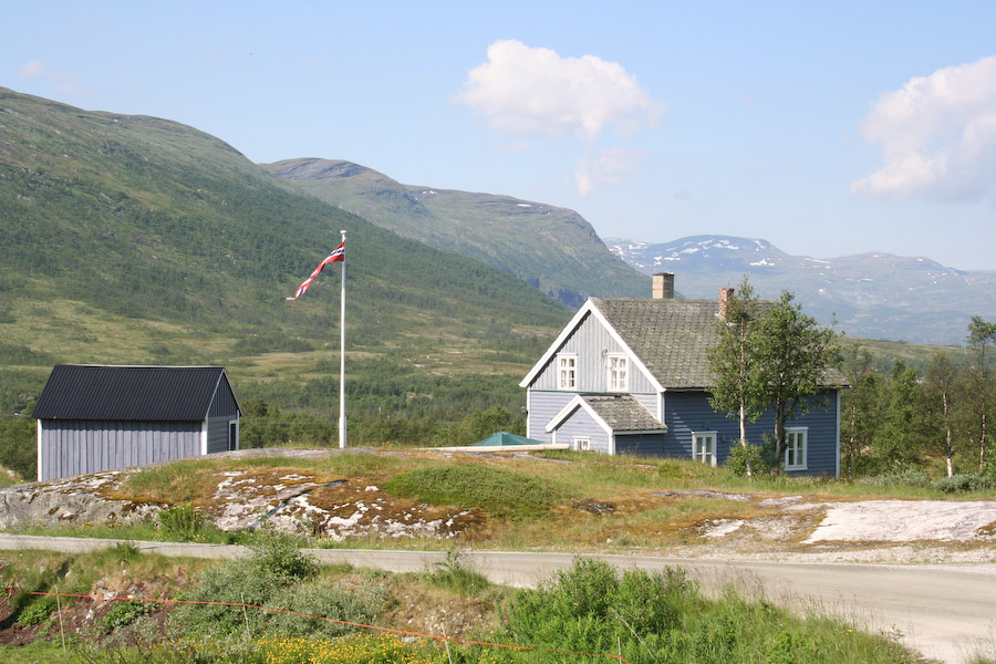 flaga norweska lub jej uproszczona wersja ("wimpel") jest znakiem, że gospodarz jest w domu