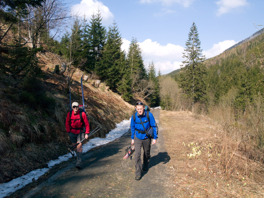 Na poszukiwania śniegu nadającego się pod nasze narty, wyruszamy w niedzielny poranek ze Szpindlerowego Młyna. Początek drogi nie wygląda zachęcająco...