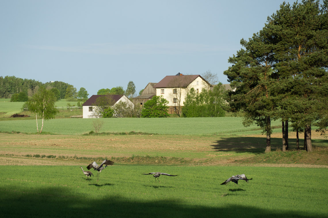 na łące pasły się żurawie