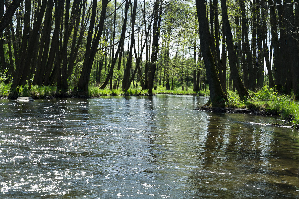 za odejściem kanału Wdy rzeka robi się wąska, bystra i piękna