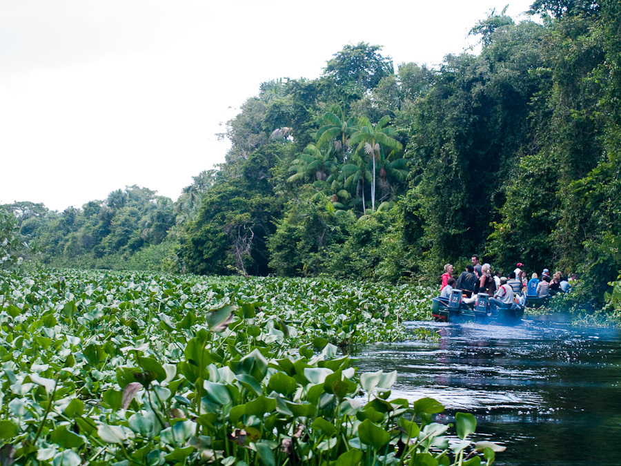 jedna z odnóg rzeki całkowicie pokryta pływającą roślinnością